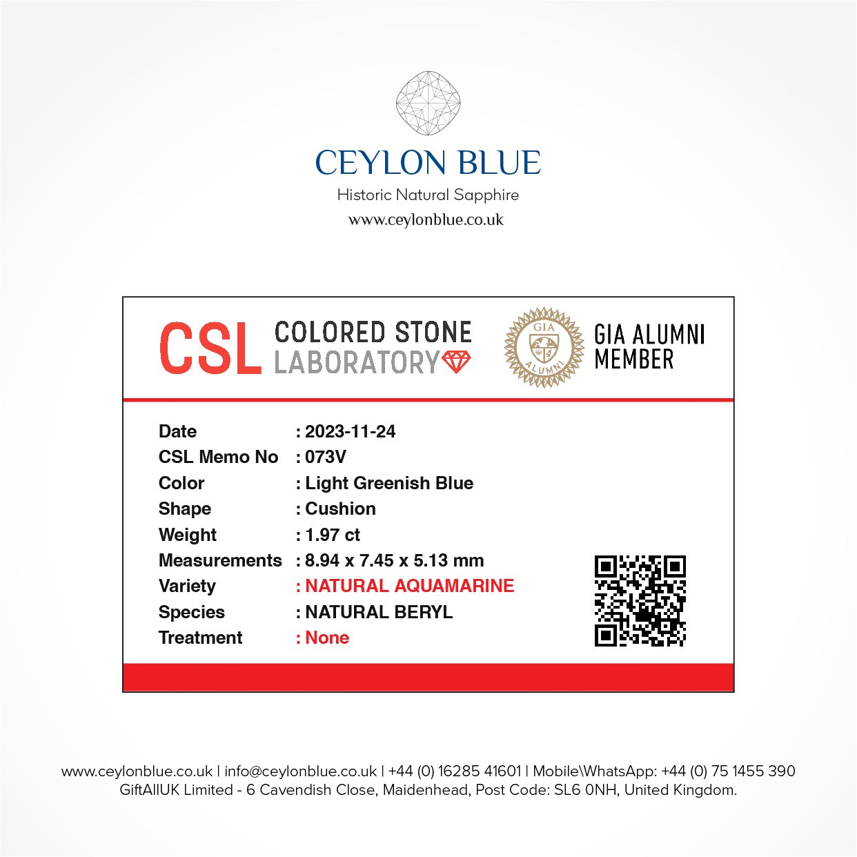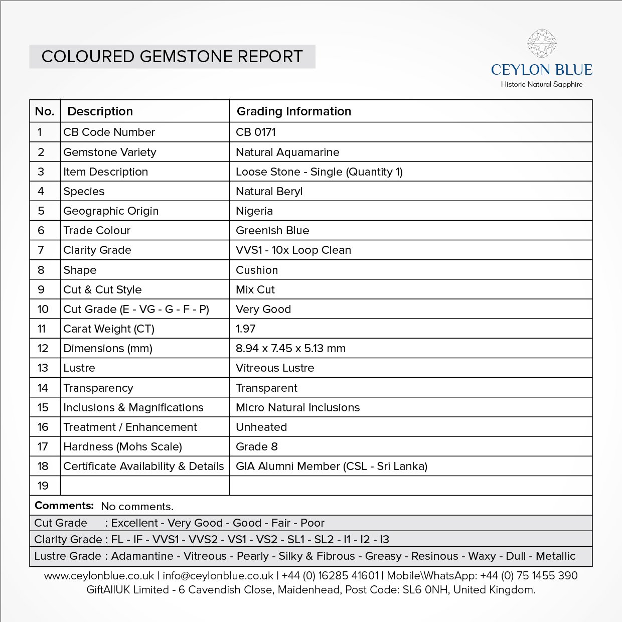 Aquamarine 1.97ct Greenish Blue Pear Shape – CB 0171