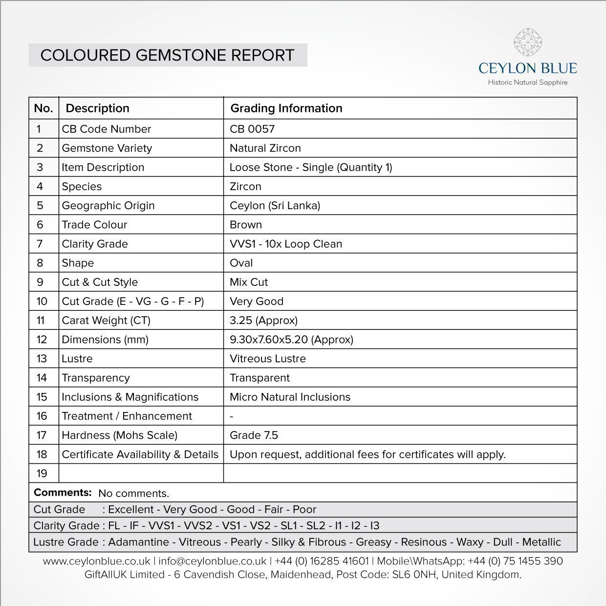 Brown Zircon 3.25ct Oval Shape – CB 0057