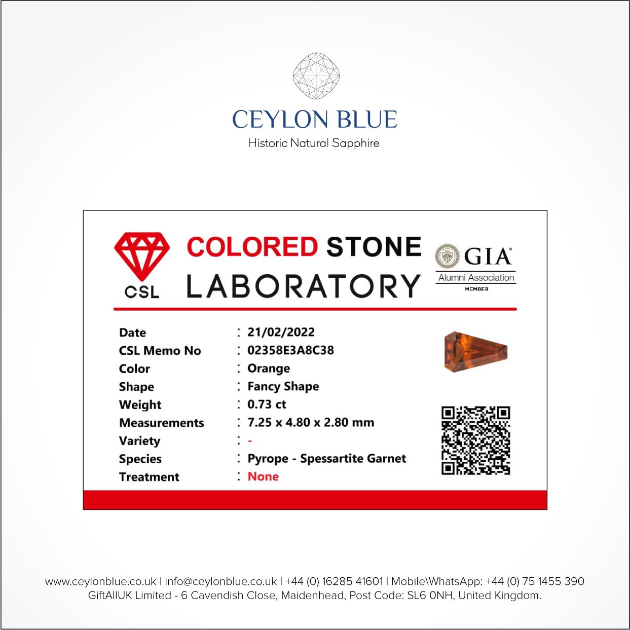 Orange Spersastite Garnet 0.73ct Fancy Shape – CB 0018