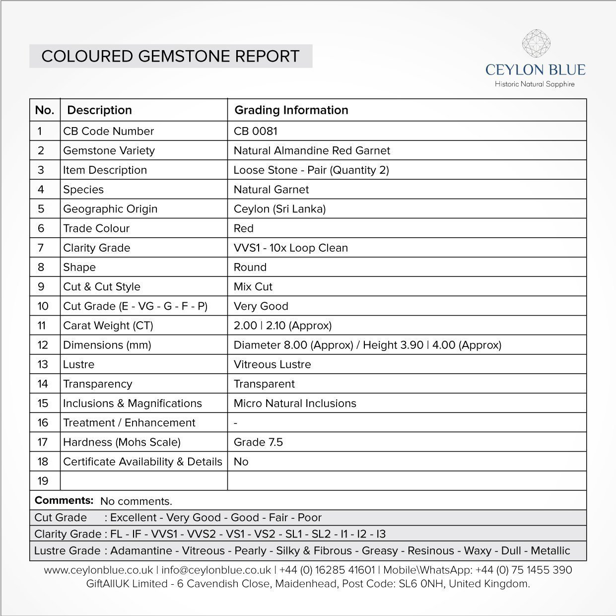 If the buyer is not satisfied with their purchase, they may return the gemstones within 14 days of delivery for a refund or exchange. For more info: https://ceylonblue.co.uk/refund-and-exchange-policy The buyer is responsible for the cost of return shipping and the gemstones must be returned in their original condition. Refunds will be issued within 21 days of receipt of the returned gemstones.