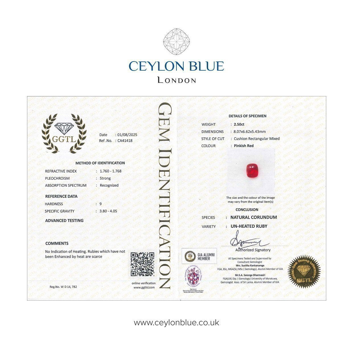 - Certified by GIA & The Gemmological Association of Great Britain (Gem-A) Alumni Members